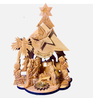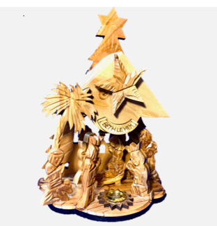 Nacimiento de tamaño mediano con caja de música que repruduce un villancico a la vez que gira la Estrella de Belén.