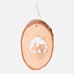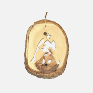 Pequeño nacimiento labrado en una lámina de rama de olivo. La mejor novedad para el árbol de Navidad. La diversidad de formas de la madera, hacen de cada nacimiento una pieza única.
